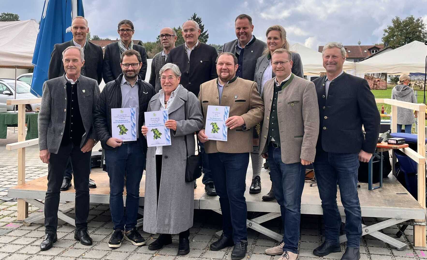 Die Bürgermeister und Bürgermeisterinnen der Öko-Modellregion Glonn-Mangfalltal-Aying auf dem 2. Marktfest der Öko-Modellregion in Glonn am 27.09.2025